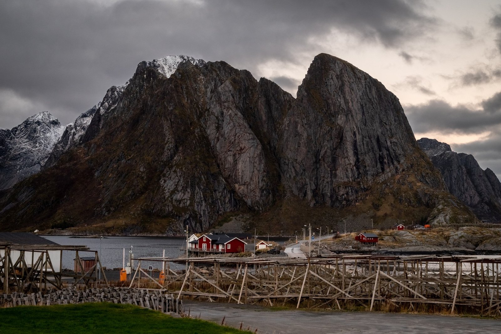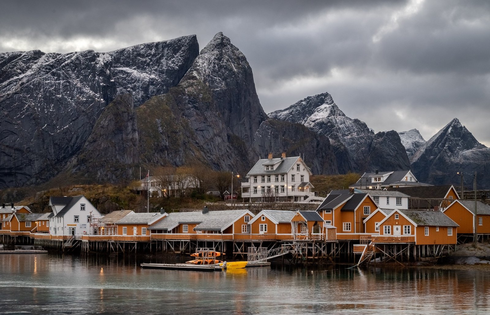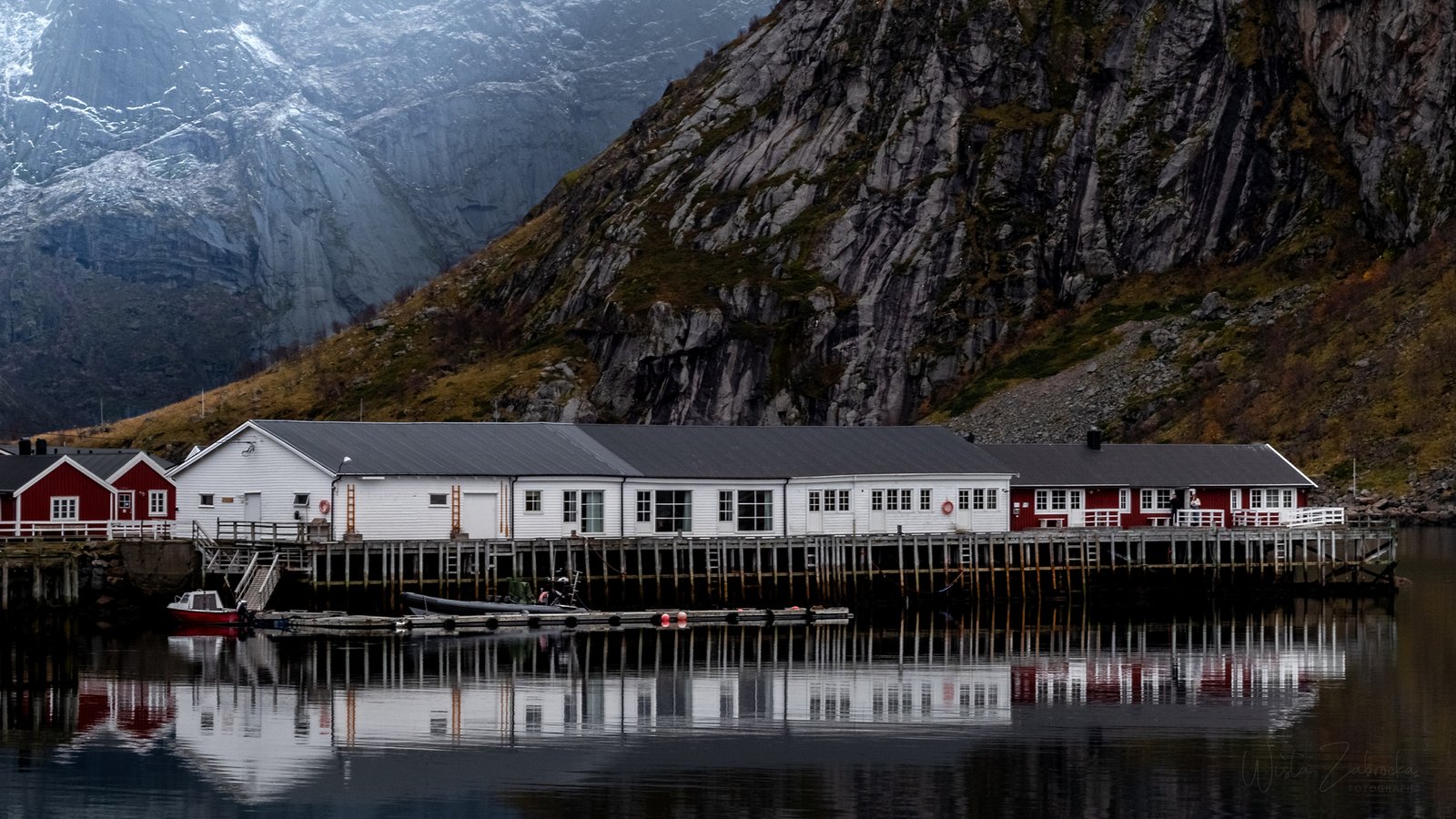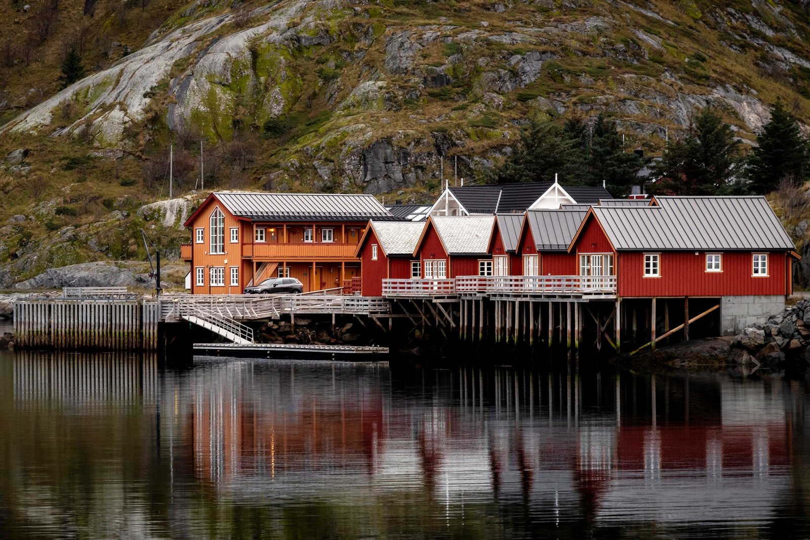 Na nabrzeżach Lofotów można znaleźć długie szeregi połączonych ze sobą drewnianych domów, pomalowanych na jeden kolor. Takie kompleksy zwane są roburer.