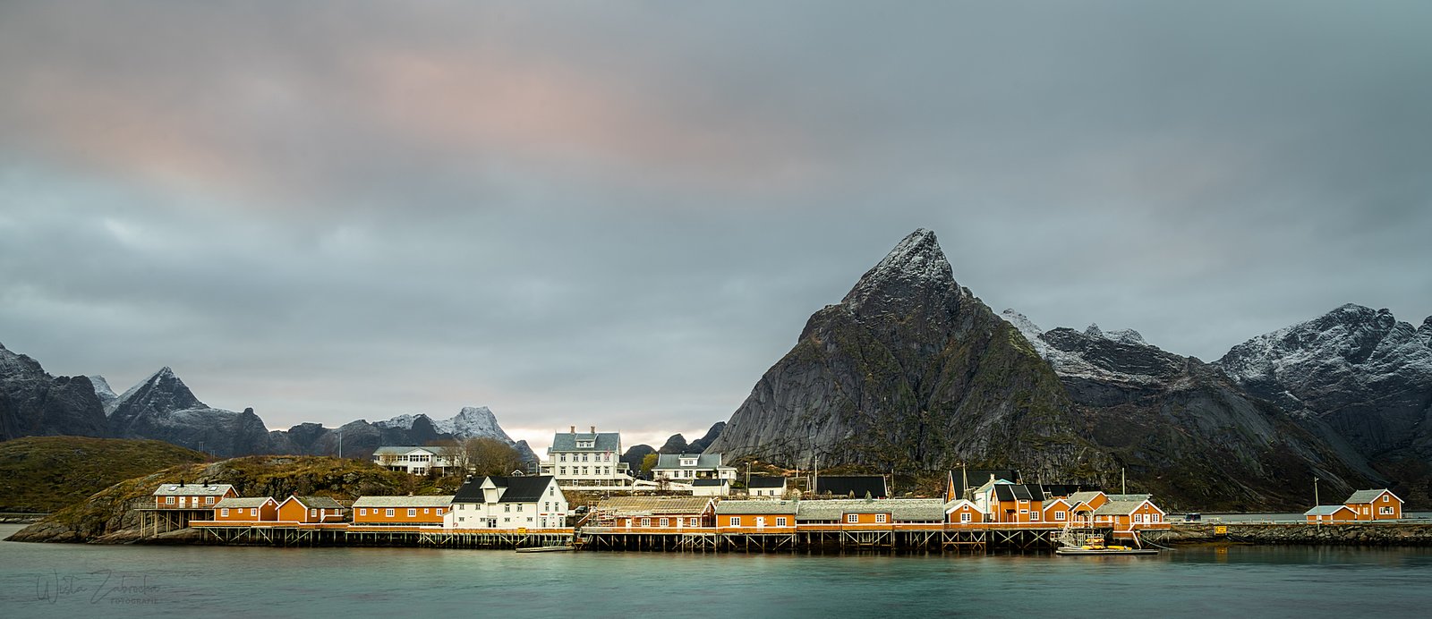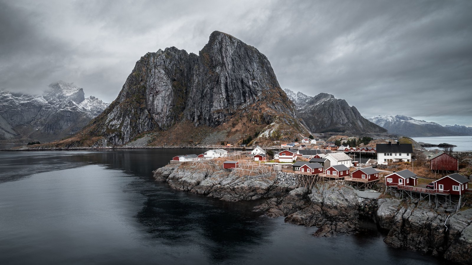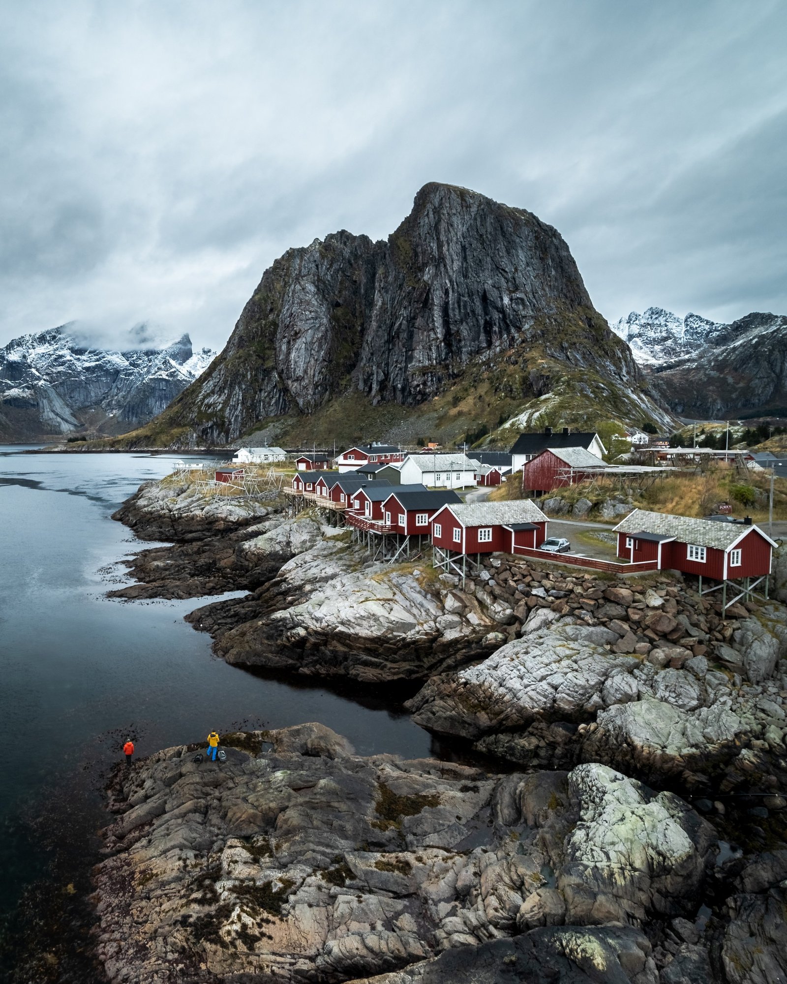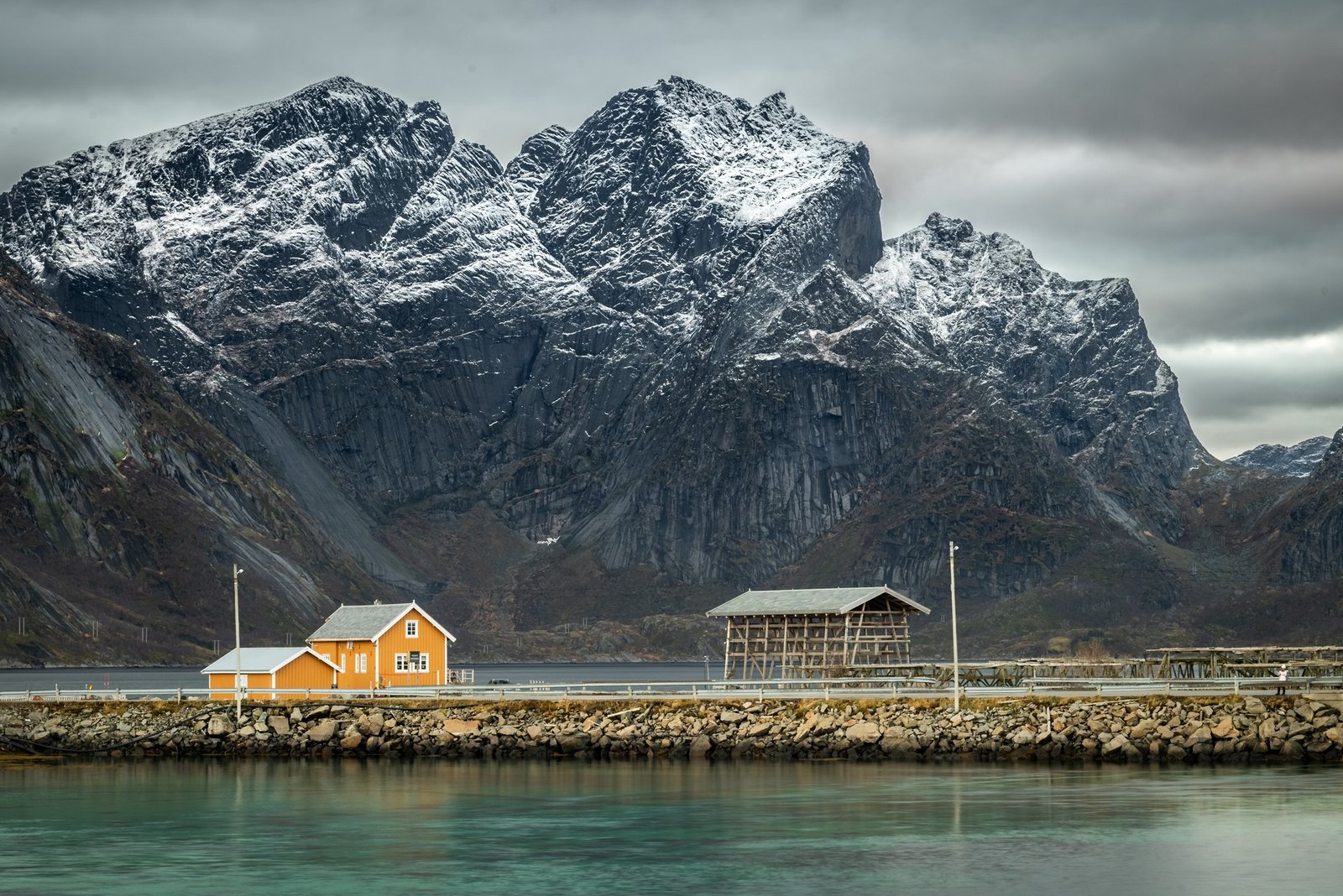 Na nabrzeżach Lofotów można znaleźć długie szeregi połączonych ze sobą drewnianych domów, pomalowanych na jeden kolor. Takie kompleksy zwane są roburer.
