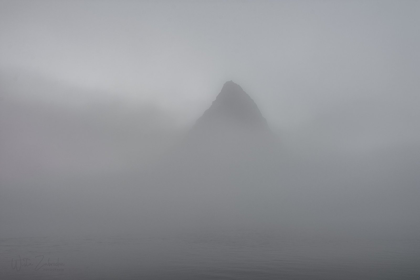 W ciągu pięciu minut nadciągnęła wielka chmura, która spowiła górę i jej okolice gęstą mgłą. Zrobiło się nagle ciemno i zimno a potem jeszcze ciemniej i jeszcze zimniej tak, że góra całkowicie zniknęła z pola widzenia a okolica stała się nagle tajemnicza, żeby nie rzec straszna. Stałam w tej ciemności, na szczęście nie sama, ponad pól godziny w nadziei na zmiany.