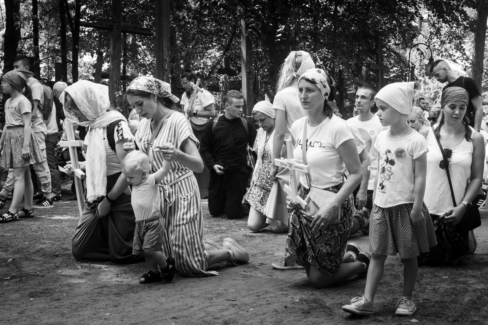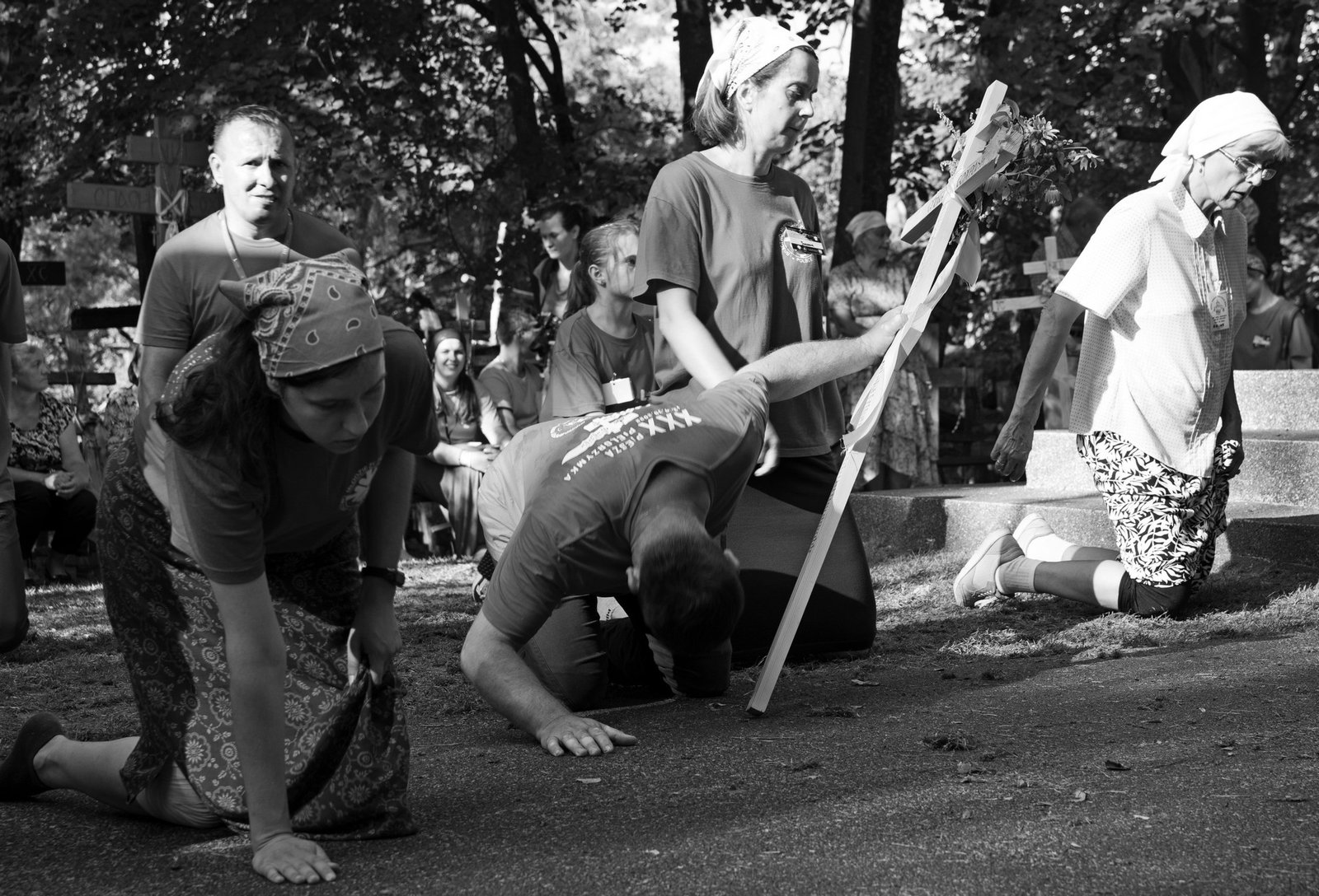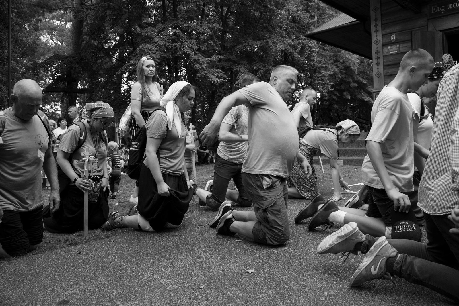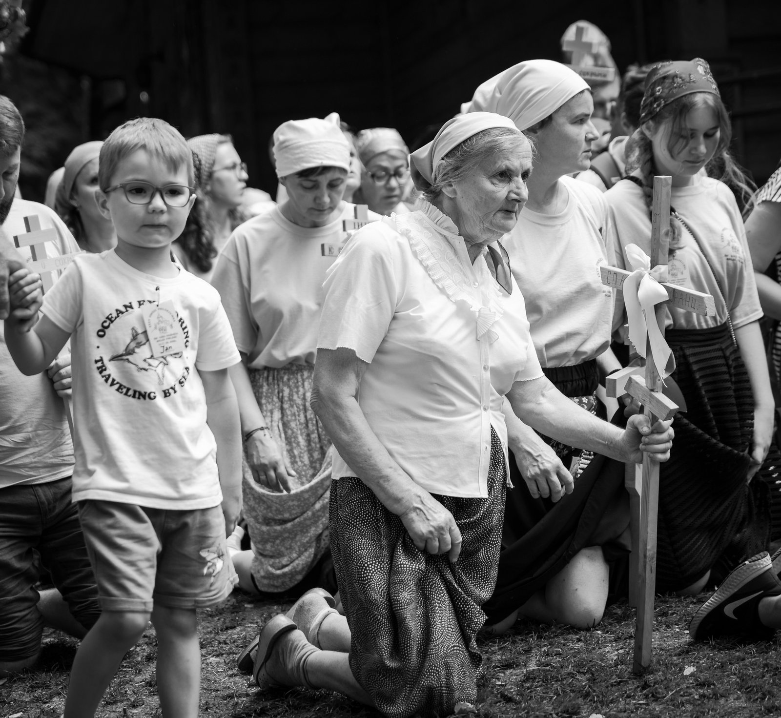 Po przybyciu na Górę pielgrzymi modląc się obchodzą trzykrotnie drewnianą cerkiew, najczęściej na kolanach. Przyniesione krzyże wkopują dookoła świątyni.