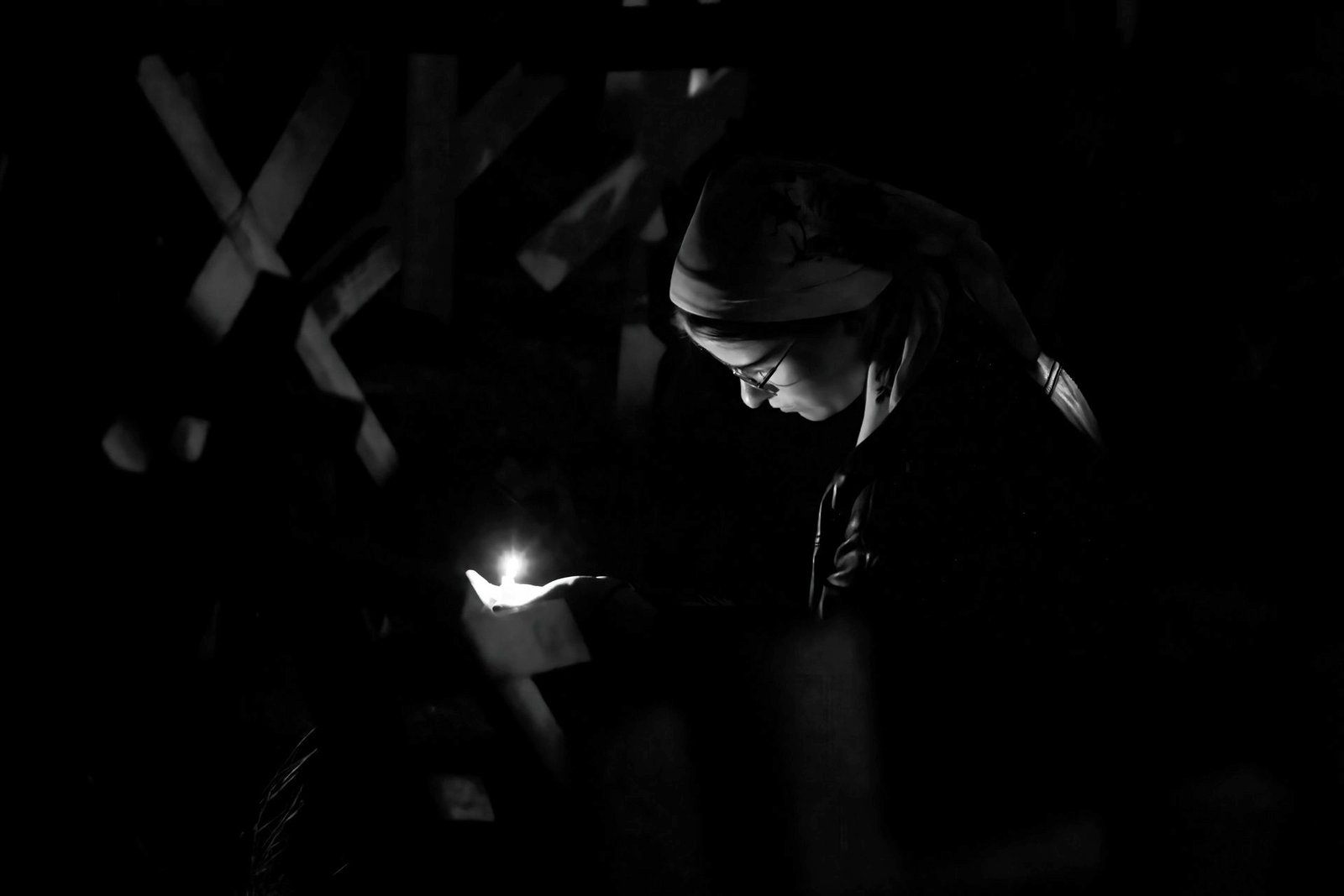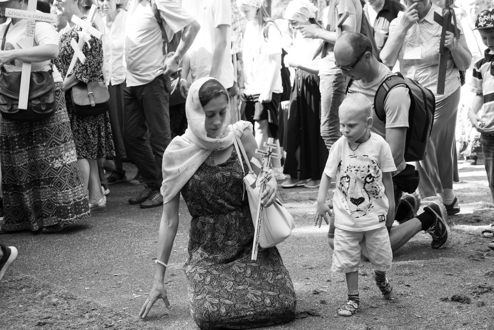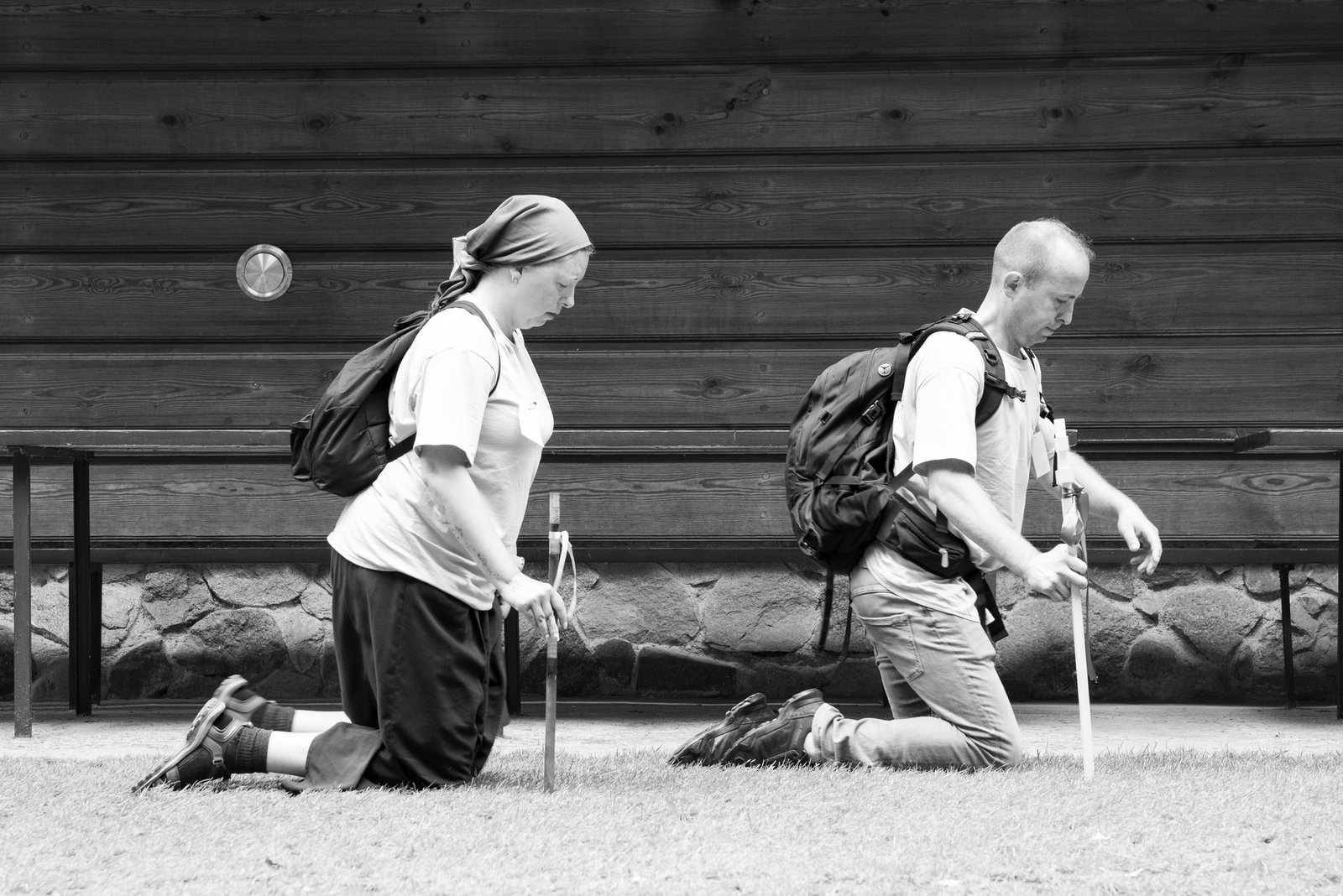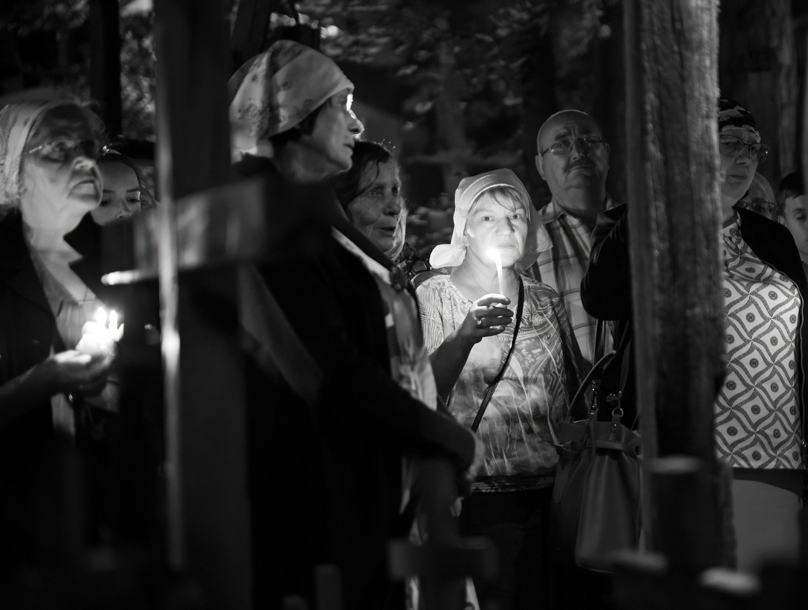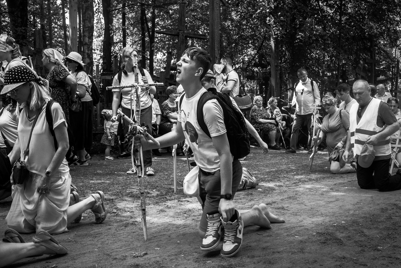 Po przybyciu na Górę pielgrzymi modląc się obchodzą trzykrotnie drewnianą cerkiew, najczęściej na kolanach. Przyniesione krzyże wkopują dookoła świątyni.