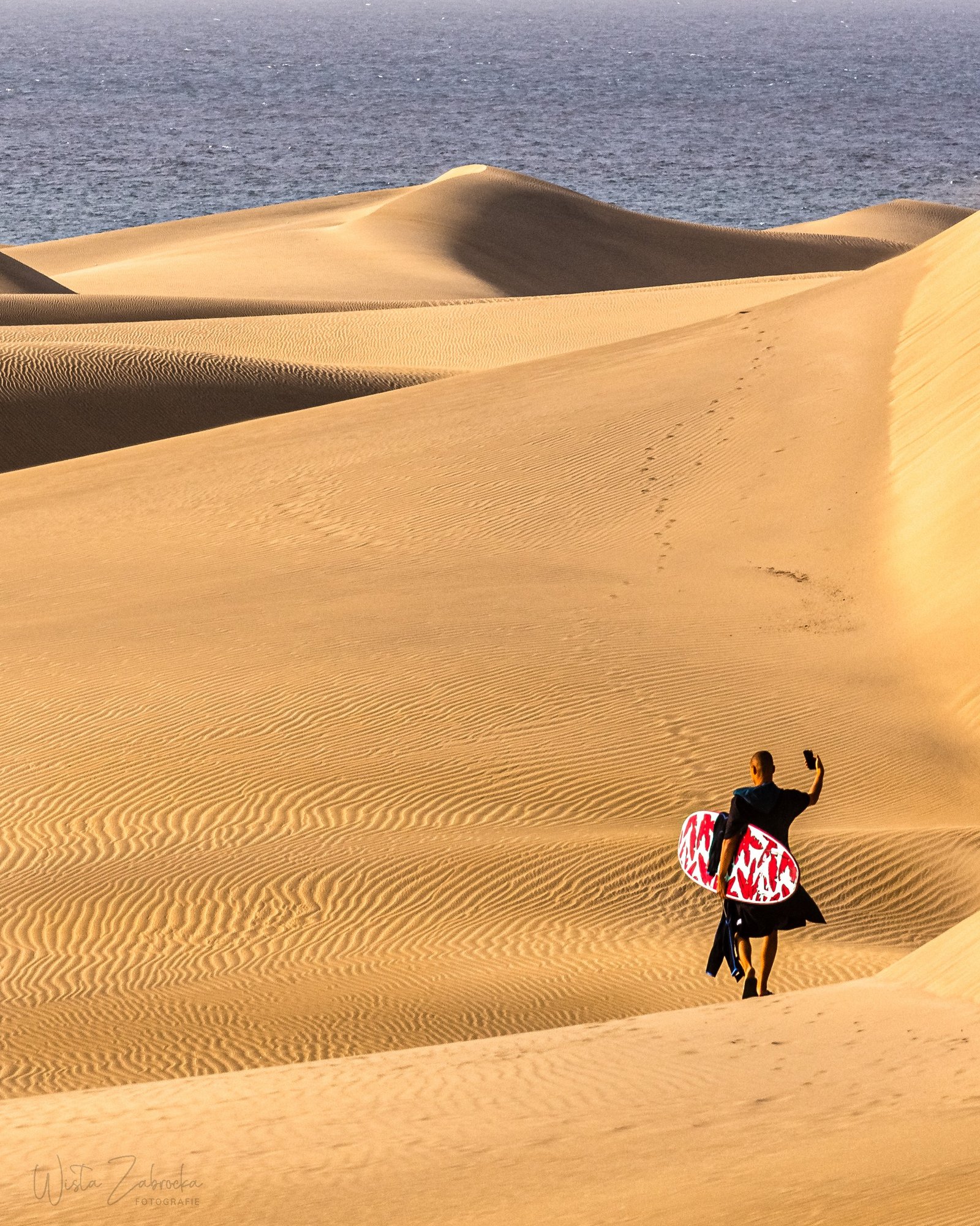 Rezerwat Dunas de Maspalomas znajduje się w południowej części Gran Canarii. Odwiedziłam to miejsce marcowym świtem. Słońce wzeszło leniwie. Kurort budził się pomału. Chodziliśmy sami wśród wydm napawając się tym odmiennym widokiem. Pustynia w sąsiedztwie oceanu. Osobliwość!
